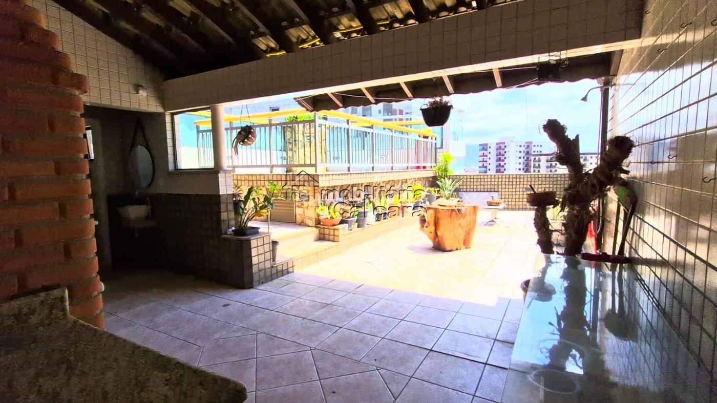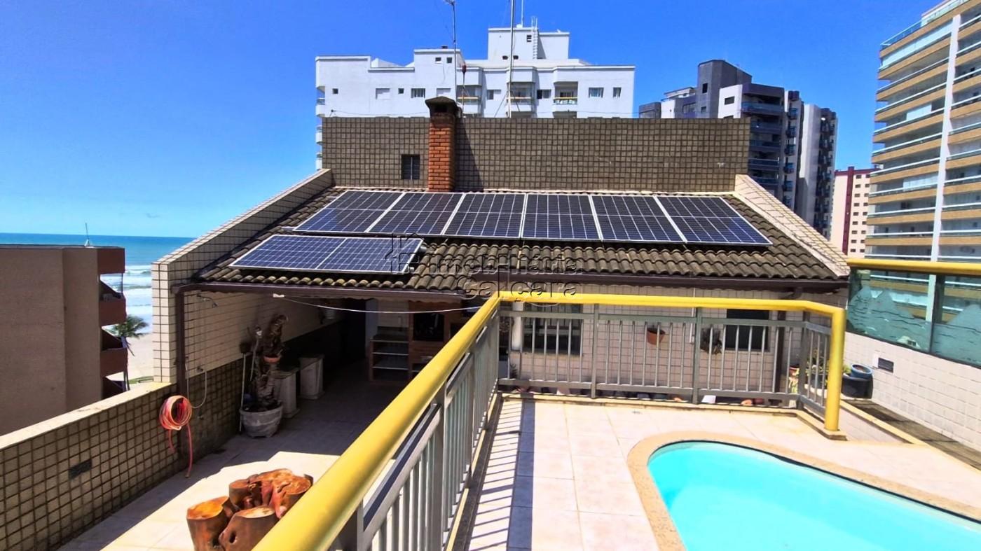 Cobertura 40m do mar com vista livre! no bairro Caiçara! O imóvel conta com 03 dormitórios, sendo 02 suítes (uma master), cozinha, sala 02 ambientes com sacada e vista para o mar, wc social, área de serviço, vista para o mar de todas ambientes, solarium, area gourmet e piscina privativos, 02 vaga de garagem, prédio com elevador, salão de festas, deposito individual por apartamento. Ótima localização próximo ao comércio da região, mercado, farmácia, escolas públicas e particulares, ótimo acesso Rodovia para São Paulo, aceita financiamento, vale a pena conhecer!!!