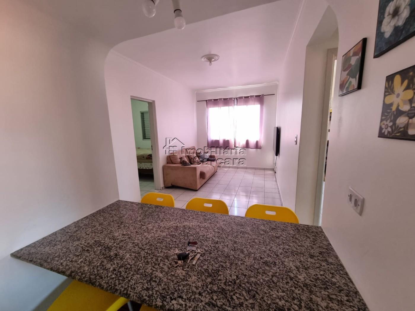 Apartamento com 02 dormitório no Bairro Caiçara! O imóvel conta com 2 dormitórios, cozinha, sala ampla, wc social, área de serviço, á 300 metros da praia, 01 vaga de garagem, prédio sem elevador, prédio com churrasqueira e armários de pertences. Ótima localização próximo ao comércio da região, mercado, farmácia, escolas públicas e particulares, ótimo acesso Rodovia para São Paulo, aceita financiamento vale a pena conhecer!!!!